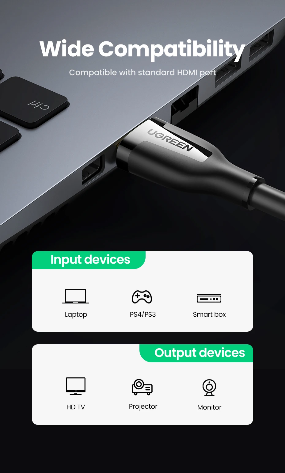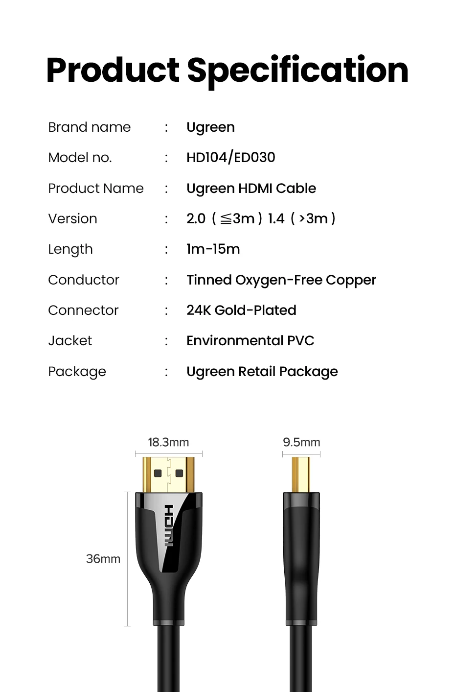 Кабель-разветвитель Ugreen HDMI, 2,0, 4K60 Гц, штекер-штекер