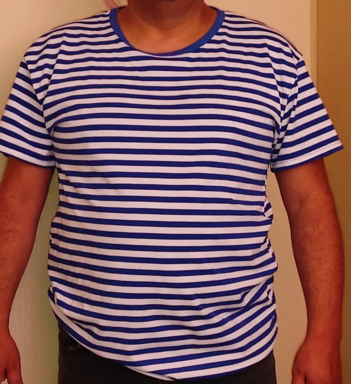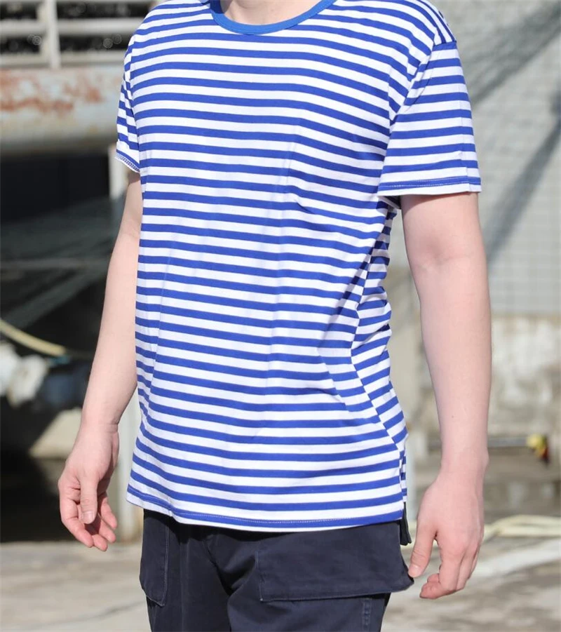 Футболка в полоску моряка происходит от военно-морской эскадрильи советской патриотической войны во время Второй мировой войны. Он представляет собой огромный океан и голубое небо. Причина, по которой темно-синяя рубашка в полоску была впервые оснащена, заключается в том, что футболка имеет практичную функцию. Когда моряк случайно падает в море с палубы, они могут быть быстро обнаружены. Также говорят, что оптический эффект, создаваемый горизонтальными полосами, может создавать иллюзию большего количества солдат, чем реальных.