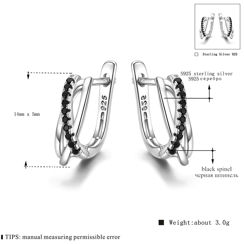 Серьги-кольца женские серебряного цвета с черной шпинелью, I023