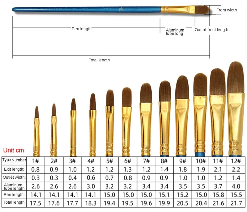 12 шт., жемчужные синие нейлоновые кисти для акварели и масляной краски, деревянная алюминиевая трубка, кисти для рисования акриловых красок, кисти для рисования