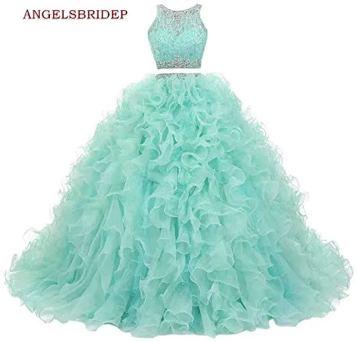 ANGELSBRIDEP 2 шт. платья для Quinceanera сексуальные платья с высокой горловиной блестящие милые 16 принцессы вечерние платья