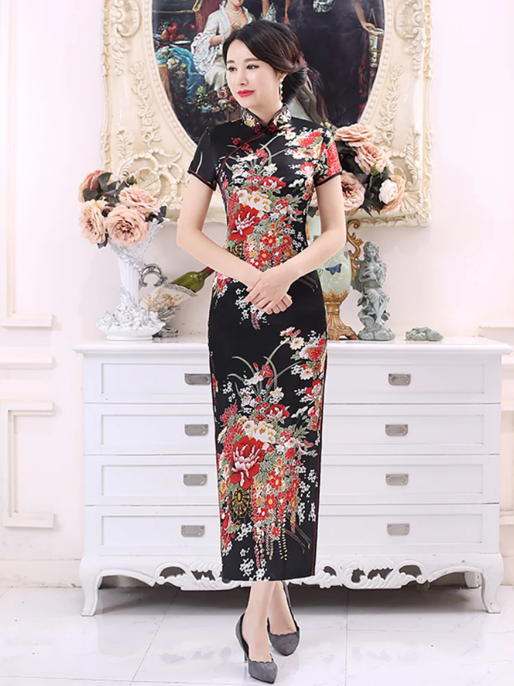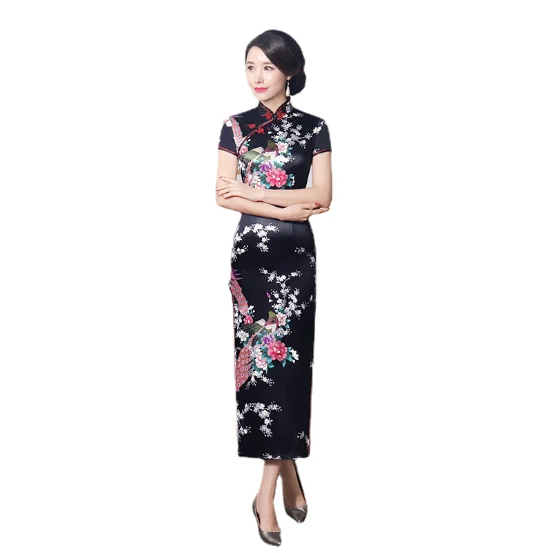 Женское классическое Ципао Qipao, длинное узкое вечернее платье с китайским традиционным винтажным воротником, Ципао