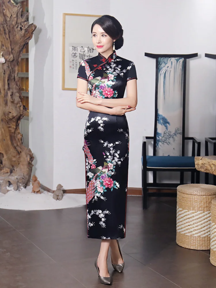 Женское традиционное китайское платье Ципао, элегантное Восточное вечернее платье с разрезом, традиционное народное Ципао