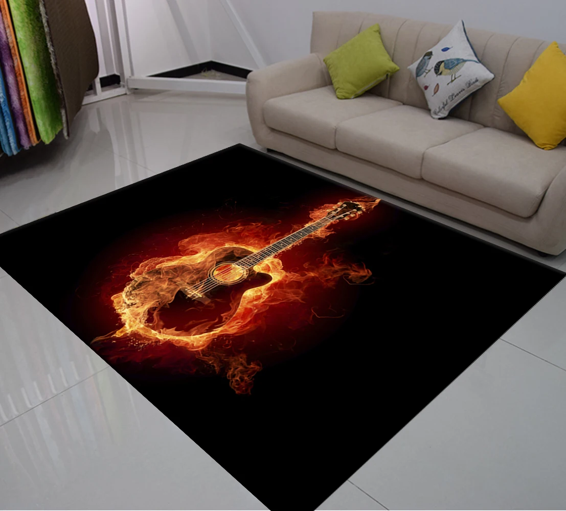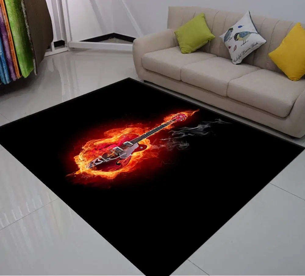 Ковер с 3D-принтом "горящая гитара", уличный ковер, детские коврики для спальни, домашний большой напольный коврик, ковер для гостиной, коврики для ползания
