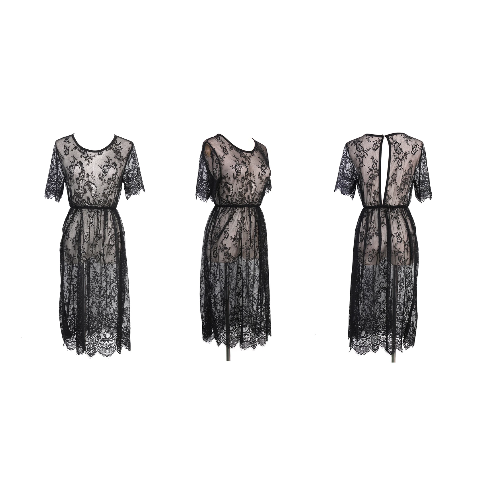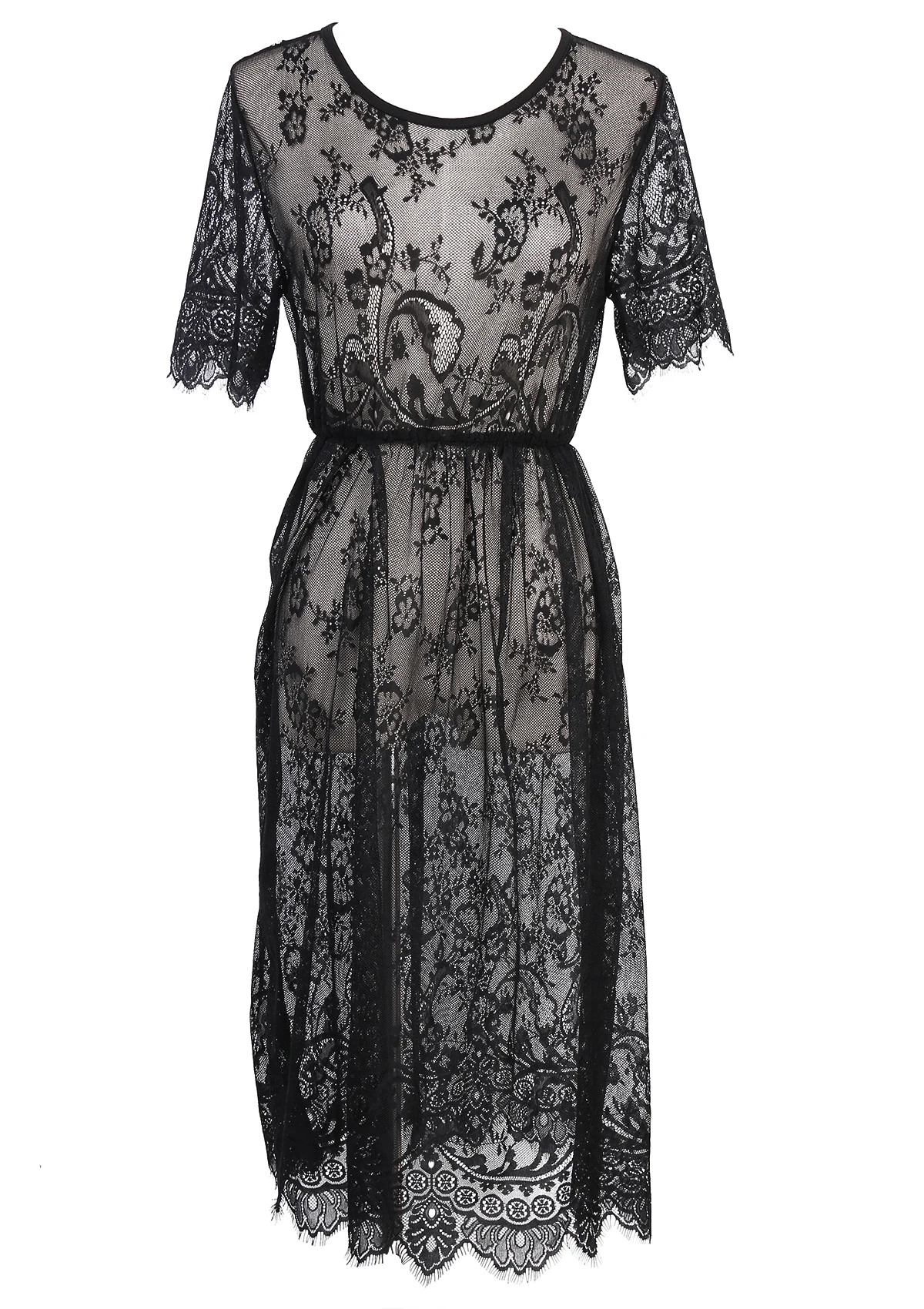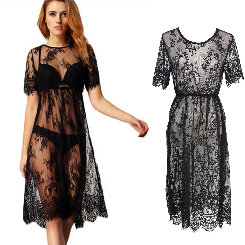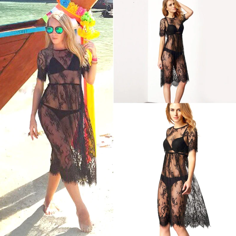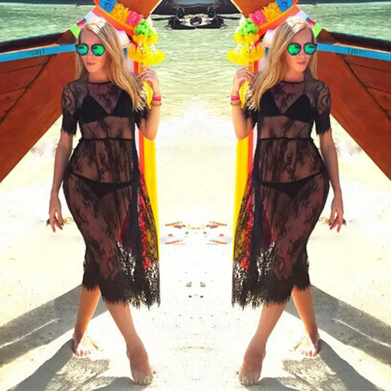 Женское сексуальное кружевное пляжное платье с коротким рукавом, накидка на купальник, кружевной с открытой спиной пляжное платье