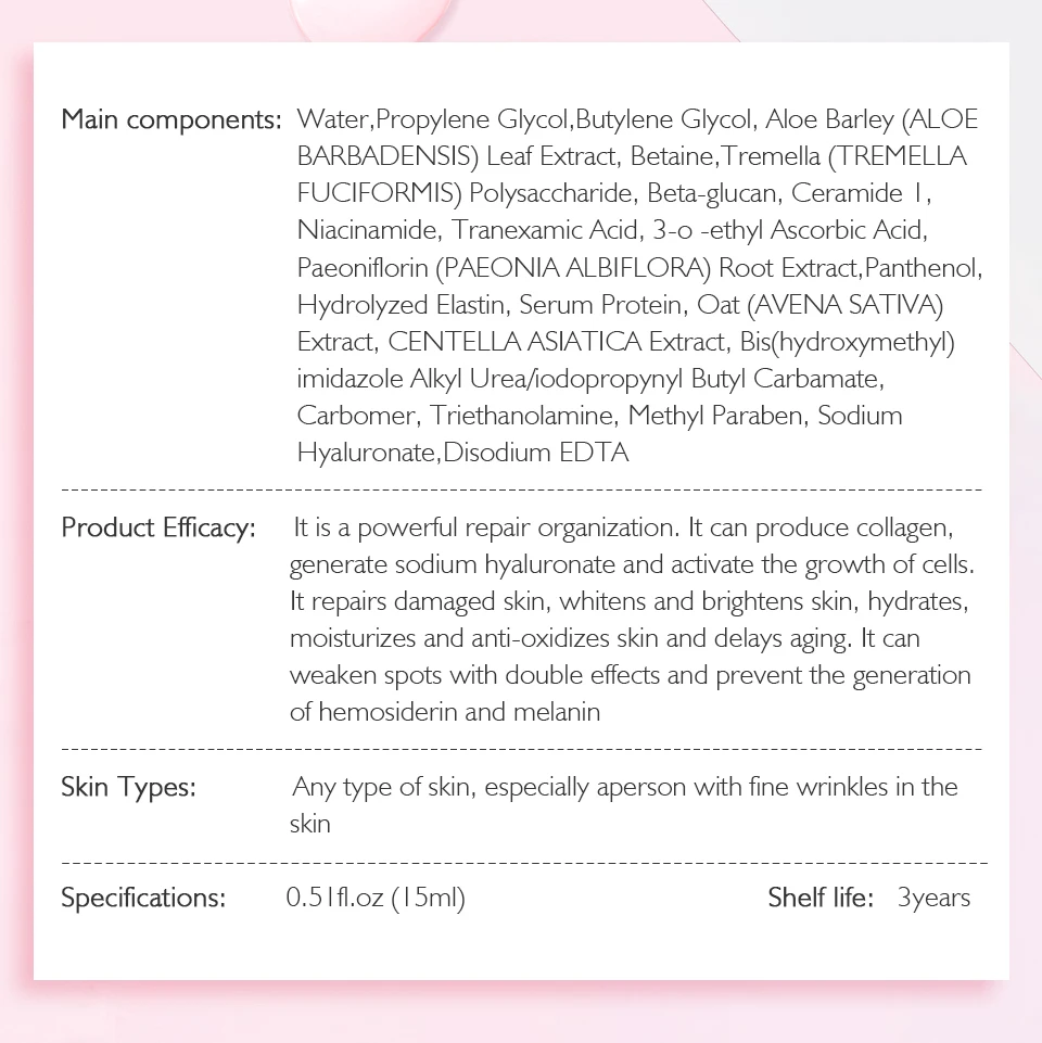 Use for face:Moisturizers Anti Aging Anti Wrinkle Hydrating Weaken spots