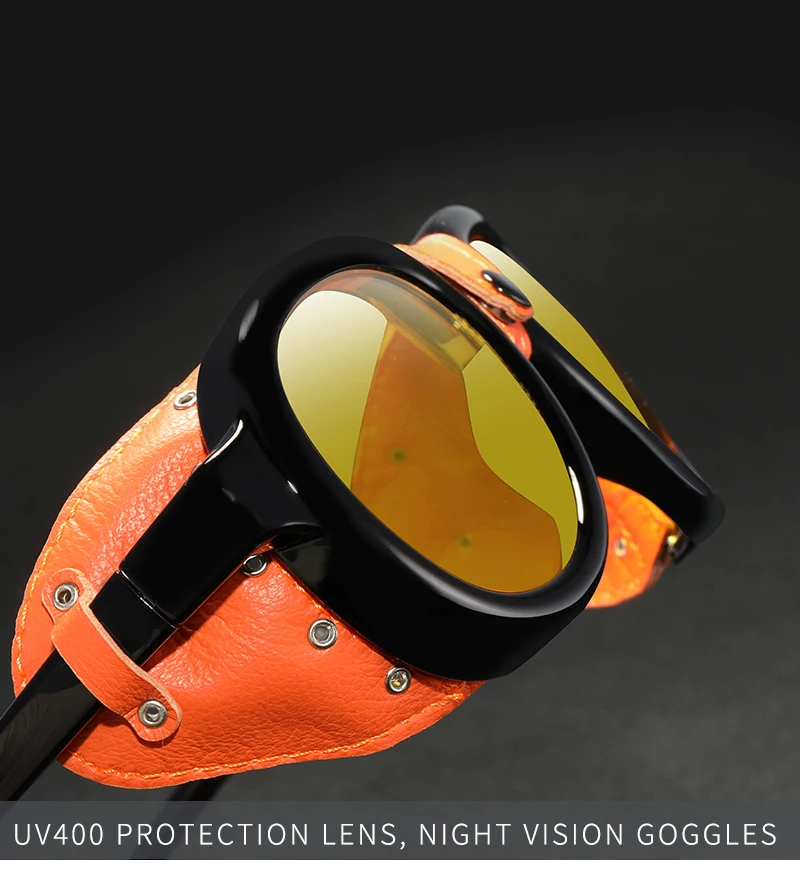 Мужские и женские очки-авиаторы KDEAM, мягкие солнцезащитные очки в стиле стимпанк, кожаный экран, с защитой UV400, KD2095