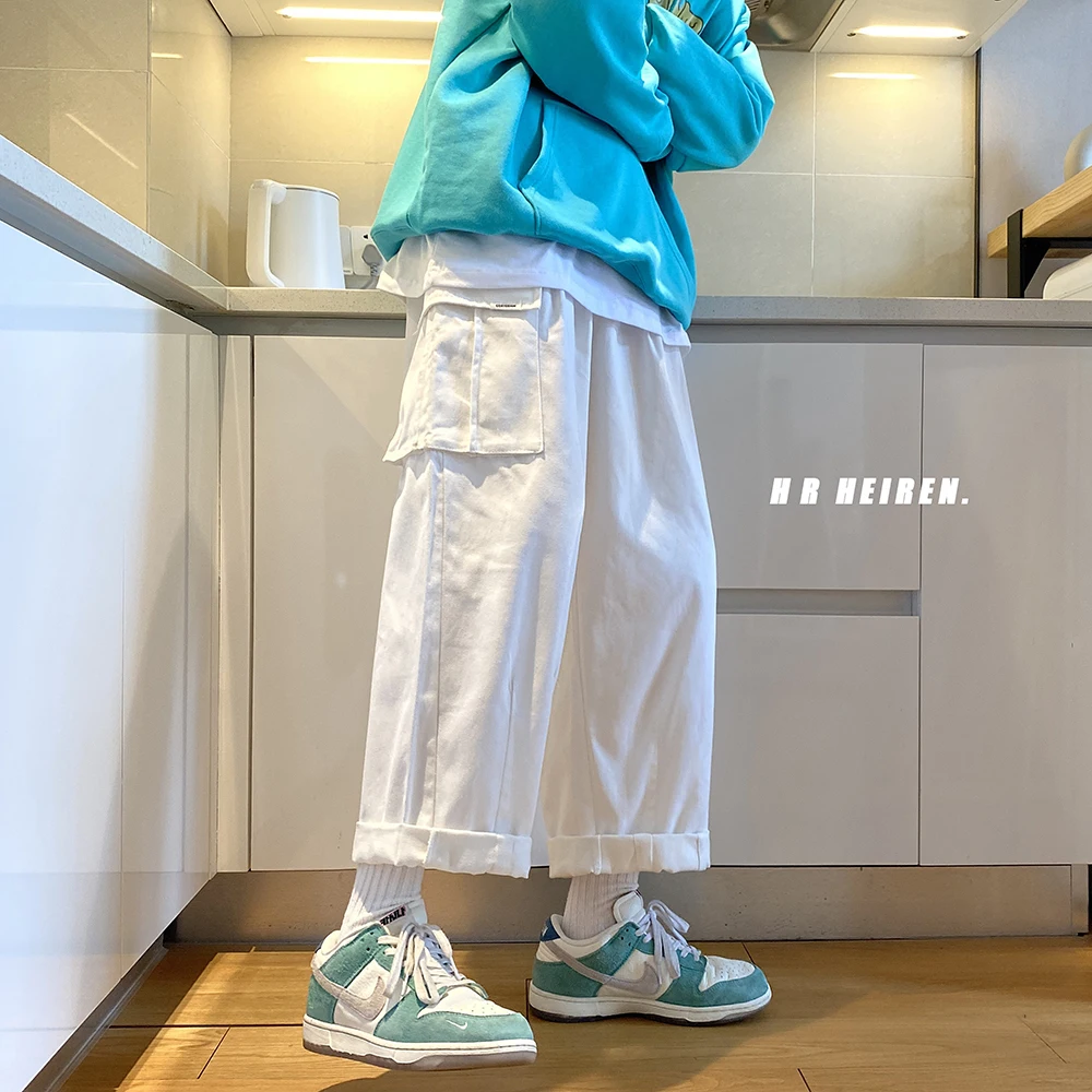 2020 мужские модные трендовые белыечерные свободные широкие брюки карго Мешковатые повседневные брюки уличные брюки размера плюс M-2XL