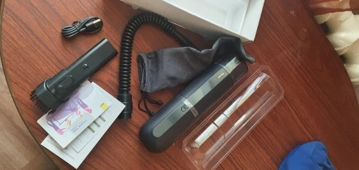 Прикольный малый! Пылесос компактный, увесистый. Из коробки был заряжен, сразу проверили, на кухне собрал крошки, всё всосал на ура. Легко чистится. В комплекте usb-кабель type-C. Нужная вещь для авто! К покупке рекомендую, доставка быстрая.