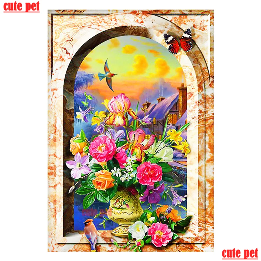 Большая Алмазная вышивка 5d, полностью алмазная живопись, цветы и П...