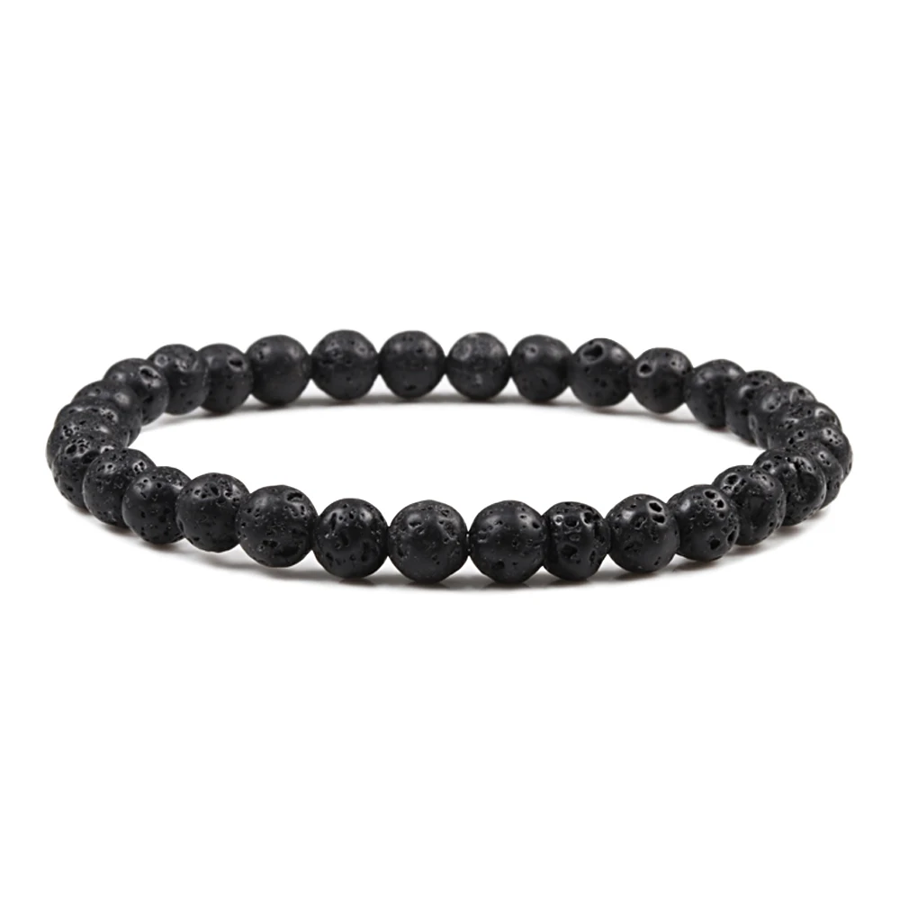 Классический натуральный камень 6 мм камень браслет из черной лавы тигровый глаз браслет из бисера Шарм ручной работы пары Pulsera ювелирные изделия для мужчин и женщин