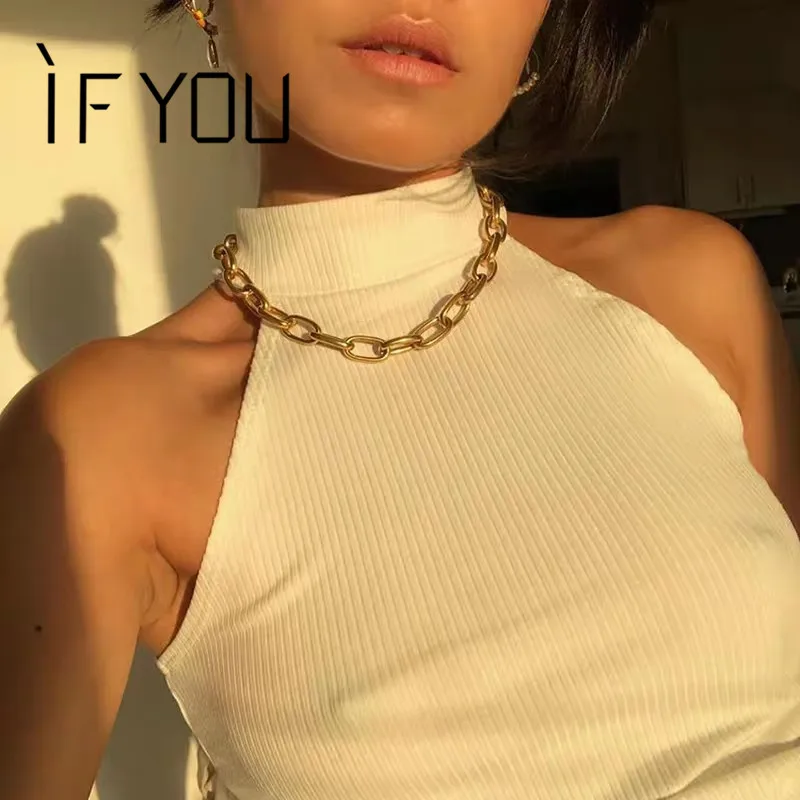 Панк массивная кубинская звеньевая цепочка, колье, женское ожерелье золотого цвета, алюминиевая толстая цепочка, ожерелье, воротник, массивные кубинские ювелирные изделия