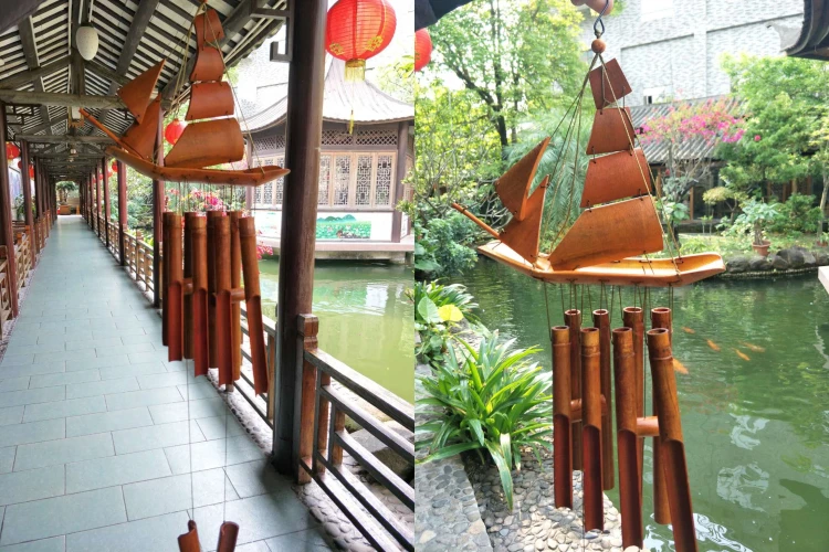 Бамбуковые ветряные колокольчики LA523, креативные уличные антикварные трубки, колокольчики, подарок для магазина, сада, настенное украшение для дома
