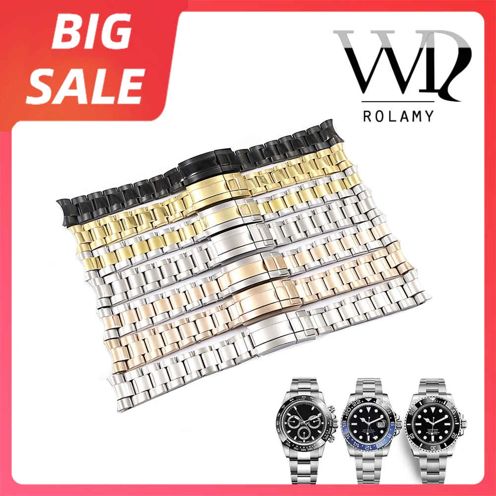 Ремешок для часов Rolamy 20 мм, черный, твердый, изогнутый, застежка с винтовыми звеньями, 316L, сталь, браслет для часов Rolex, стристер, Subamriner, Daytona GMT