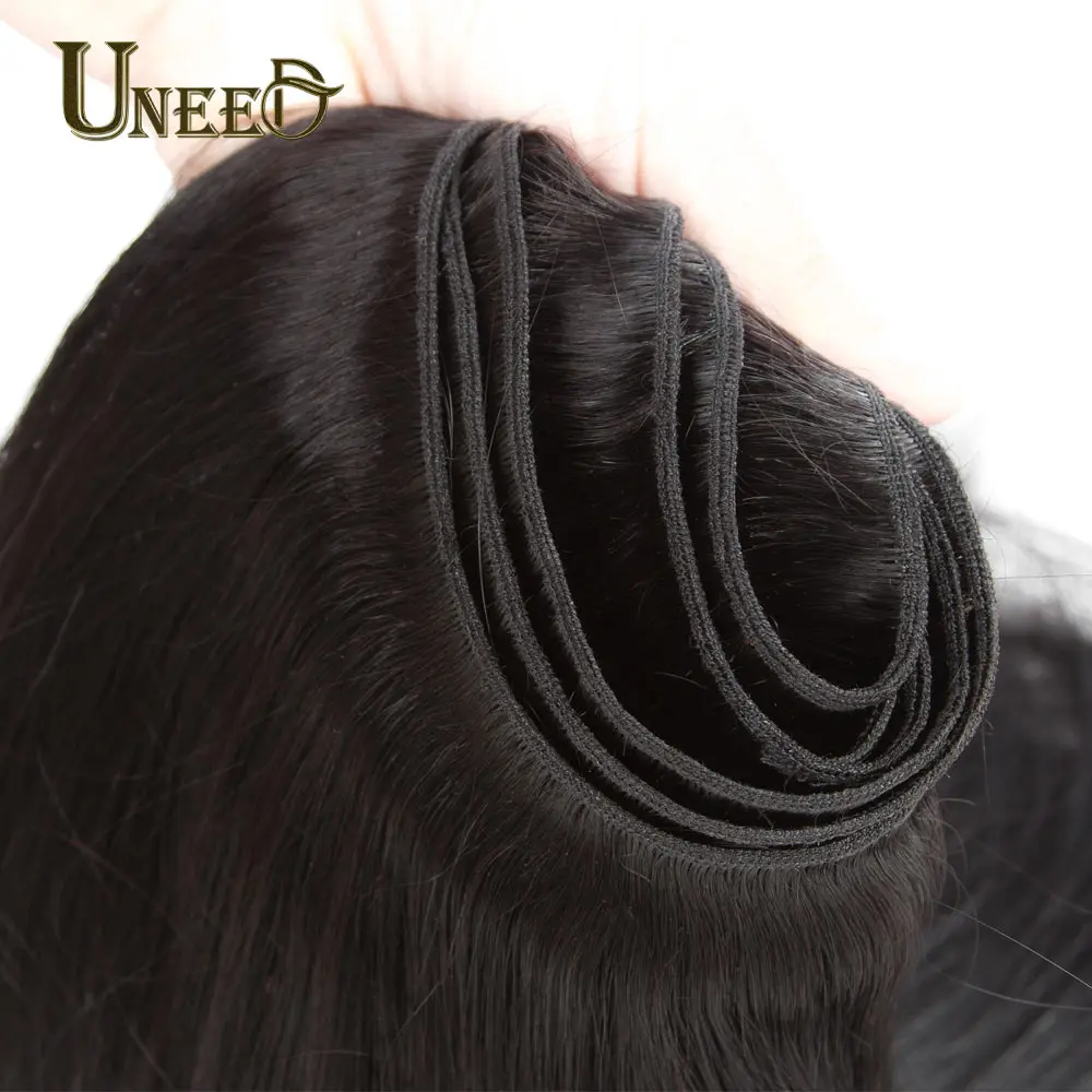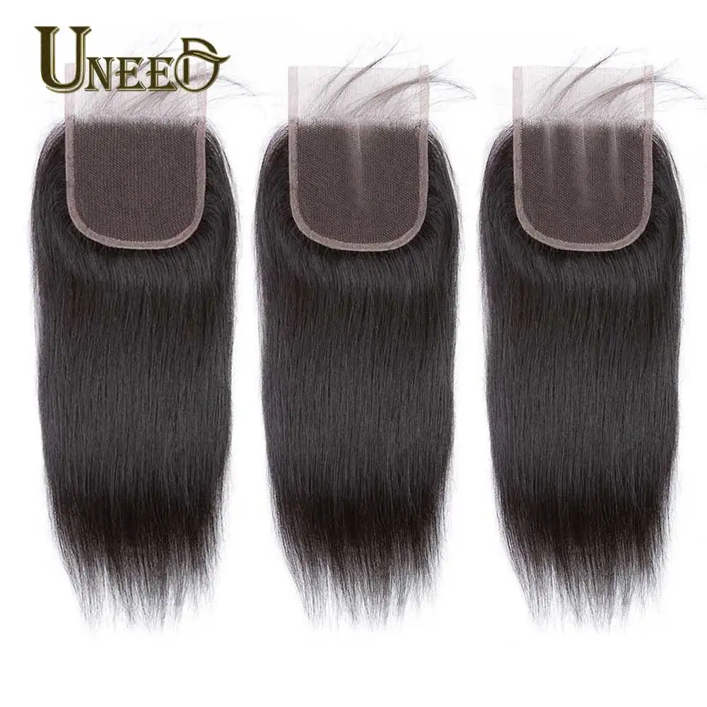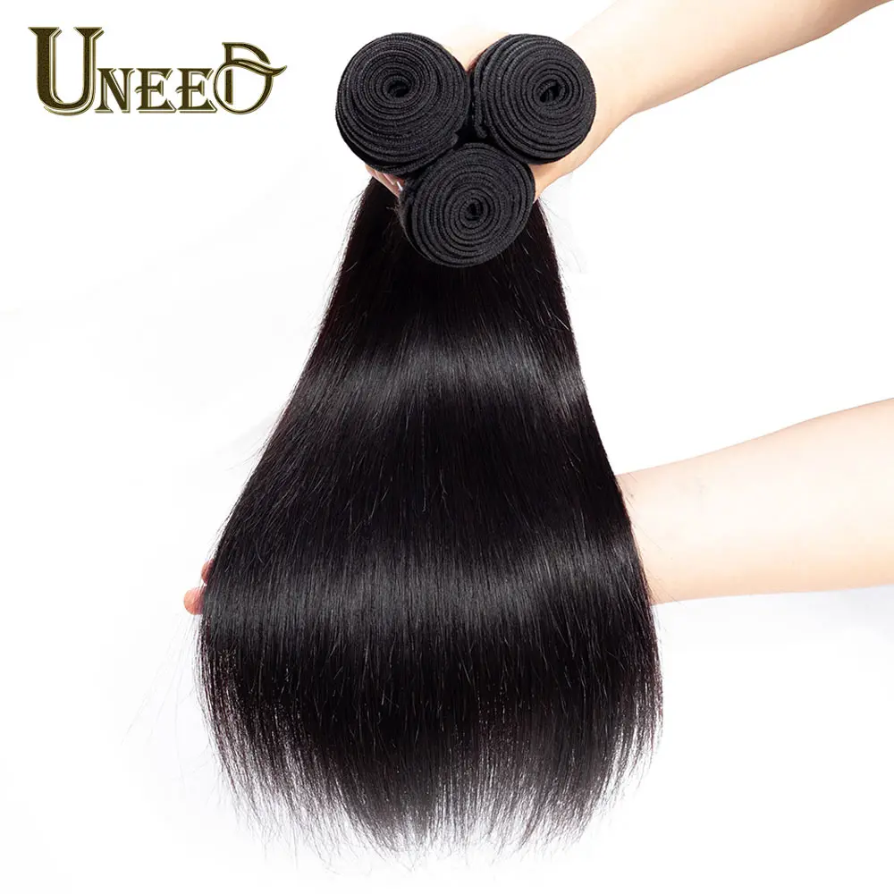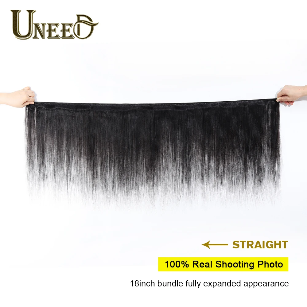Uneed пряди волос с закрытием бразильские прямые волосы плетение 34 пряди с закрытием Remy 100% человеческие волосы для наращивания 8-26 дюймов