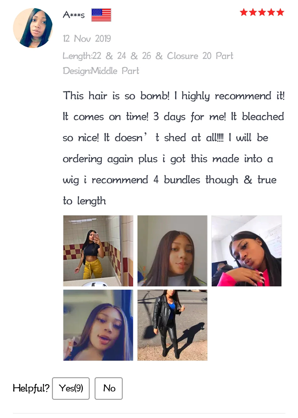 Hair FeatureNo Tangle No Shedding/True to Length/Double Weft/Last Long Time