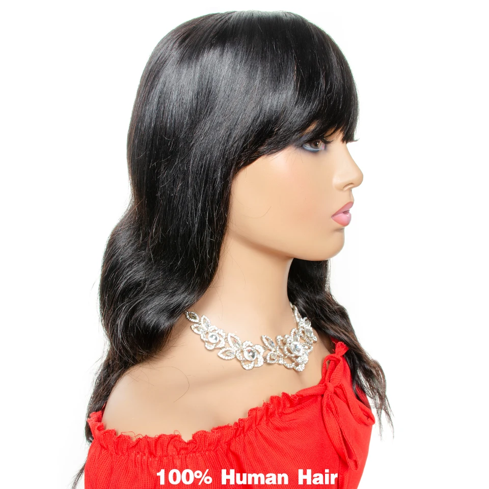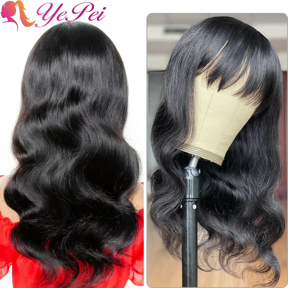 Длинные парики из человеческих волос с челкой, бразильский Волнистый парик, полный машинный парик с челкой 16-20 дюймов, 130% плотность, волосы Remy Yepei
