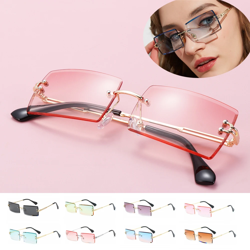 Солнцезащитные очки без оправы для мужчин и женщин, небольшие прямо...