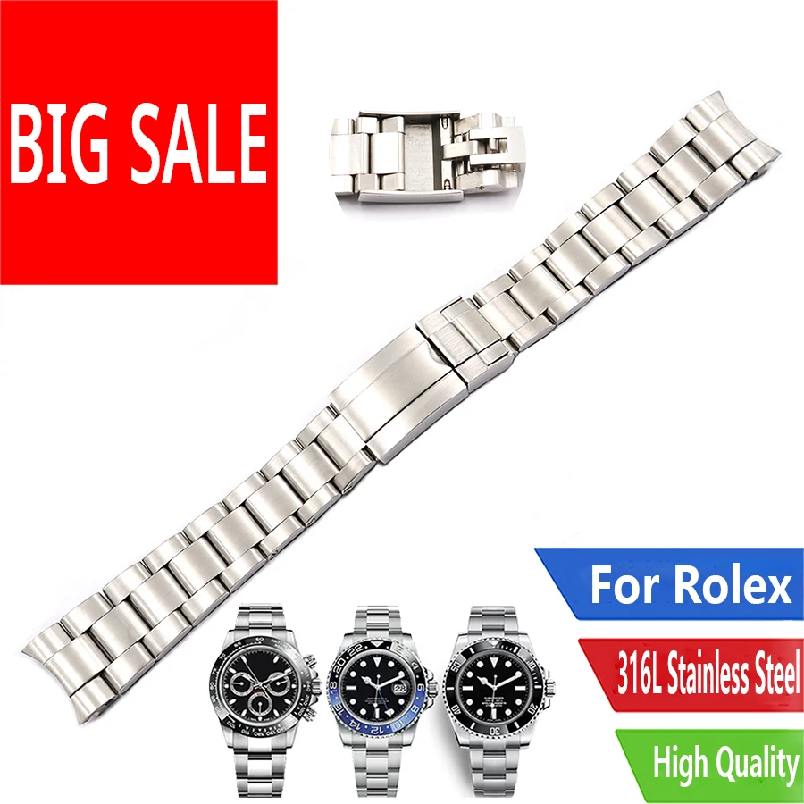 Стальной браслет для часов Rolamy 20 мм, твердые изогнутые концевые...
