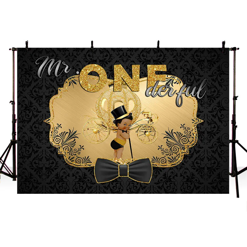 Мистер Onederful 1 день рождения фон черный галстук мальчик первый день Рождения Вечеринка фотография фон черный золотой украшение партии