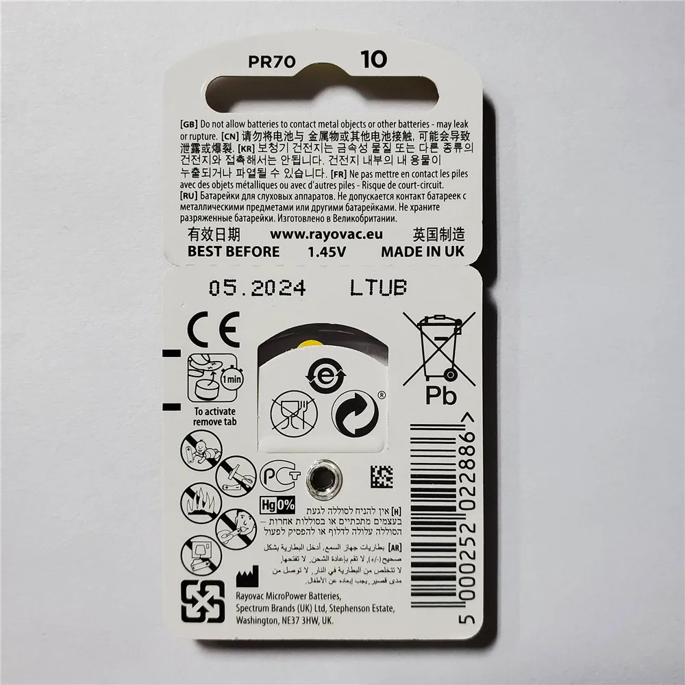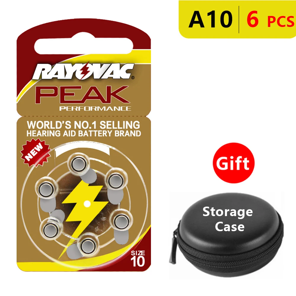 Батареи слухового аппарата Размер 10 za Rayovac пиковая производительность, упаковка из 6, желтый Tab PR70 1,4 V тип A10 цинковый воздушный аккумулятор