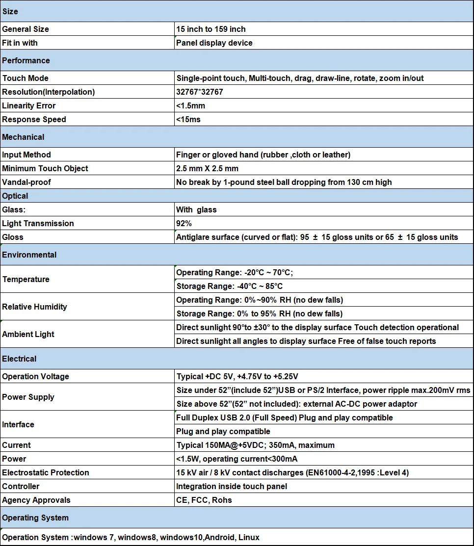 Спецификация для 21,5 Дюймов 10 точек IR multi touch screen: