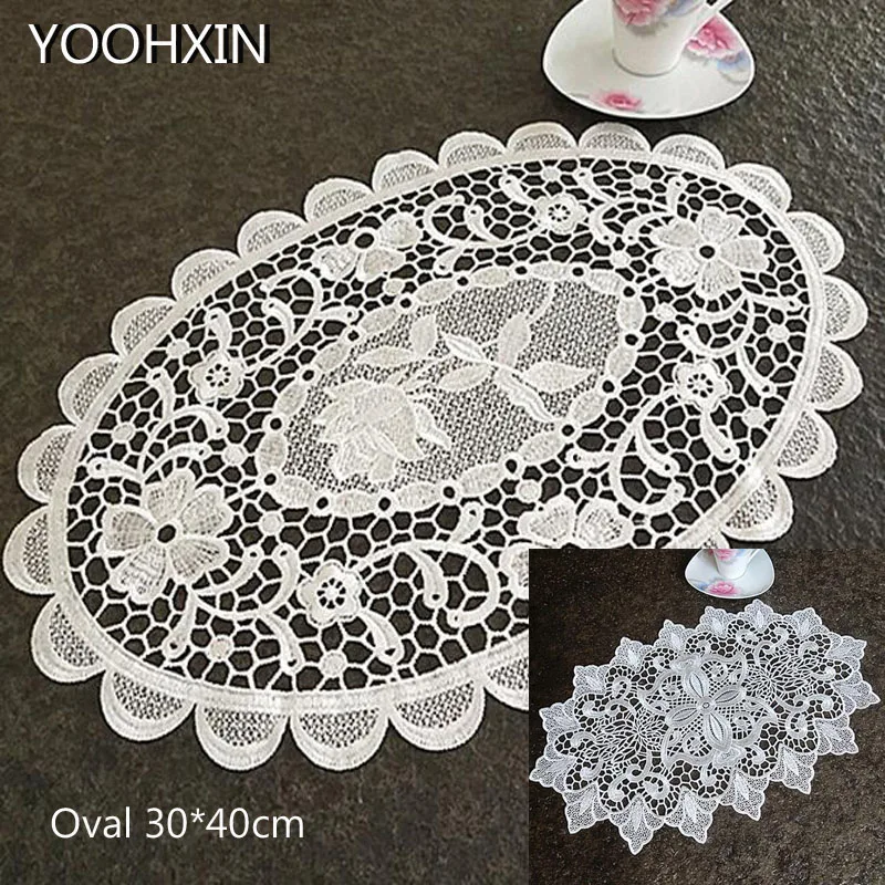 Горячий Овальный кружевной коврик с вышивкой подставки под чашки для чаякружка кухонный стол место коврик из ткани на Новый год салфетки обеденный Рождественский подарок pad