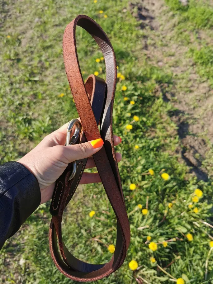Доставка до Гомеля 40 дней. Полностью соответствует заявленному описанию в профиле продавца. Я очень довольна покупкой. Качественный поводок из натуральной кожи. Отличная фурнитура и цвет. Однозначно рекомендую! Продавца благодарю.