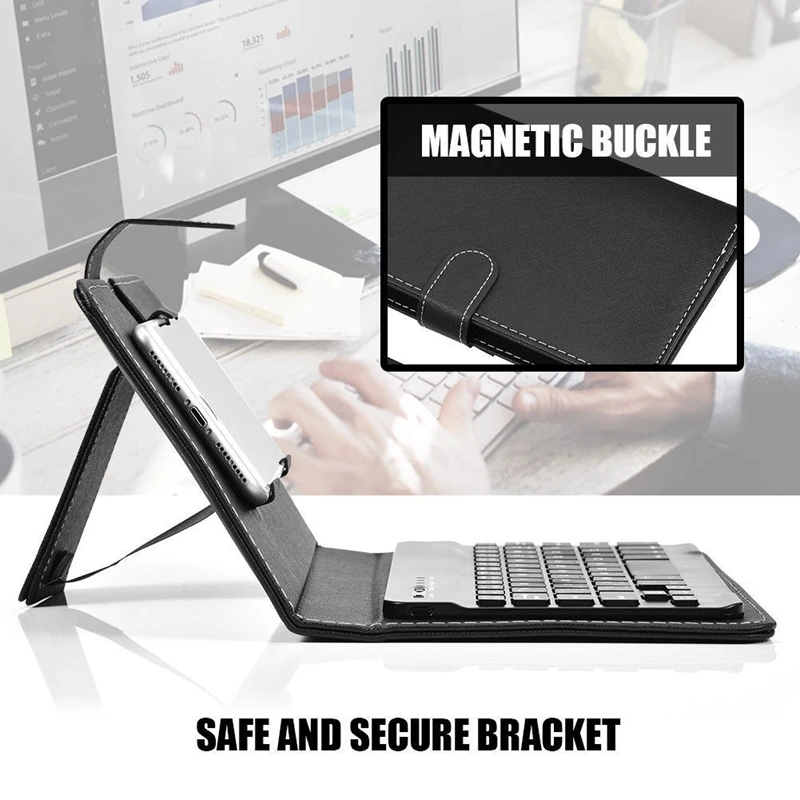 1. Совместимость с 4,5 дюйма-6,8 дюйма (ширина 6-9,5 см) Bluetooth сотовом телефоне, в том числе, Android, Windows и iOS телефонов.2. Легкий, компактный, легко носить с собой и обрабатывать. Съемный магнитный лоток для клавиатуры, чтобы превратить крышку клавиатуры в классический Чехол-портфель.3. Уникальный дизайн folio предотвращает появление царапин, обеспечивая легкий доступ ко всем портам.4. Встроенная подставка надежно удерживает ваш мобильный телефон свободными руками под идеальным углом для ввода или просмотра фильмов.5. Защитный внешний вид из высококачественной искусственной кожи обеспечивает прочную, прочную, противоударную подушку при падении, а пластиковая клавиатура Пыленепроницаемая, устойчивая к царапинам, высокая производительность и высокое качество