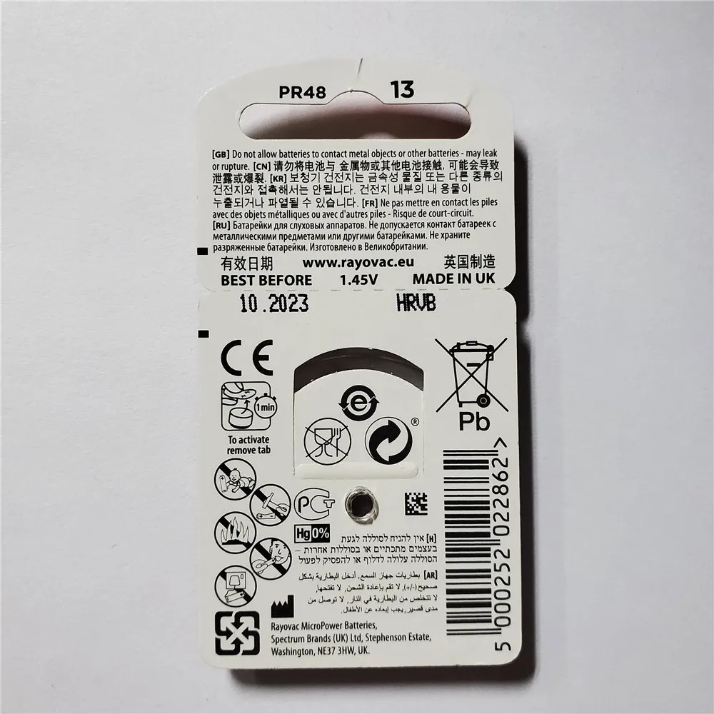 Аккумуляторы для слухового аппарата, размер 13 za Rayovac, пиковая производительность, упаковка из 6 штук, оранжевый Tab PR48, 1,45 в, тип A13, стандартная цинковая воздушная батарея