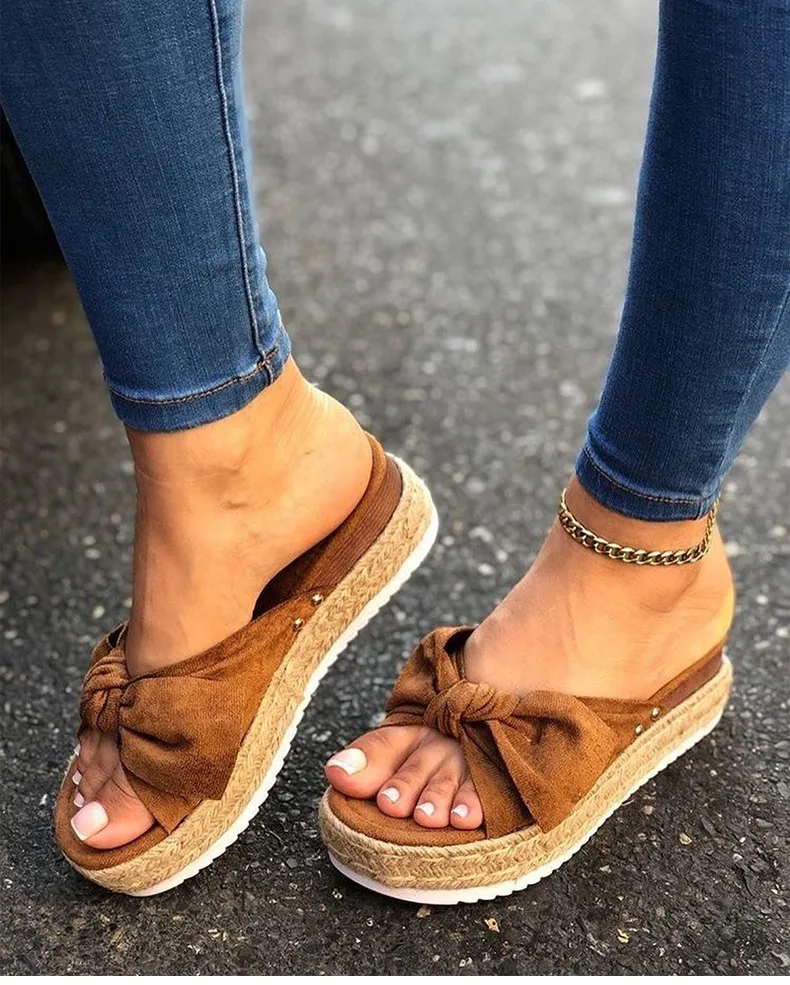 Женские летние босоножки; Босоножки на среднем каблуке; Обувь на танкетке; Женские милые шлепанцы с бантом; Sandalias Mujer Sapato Feminino; Размера плюс 35-43