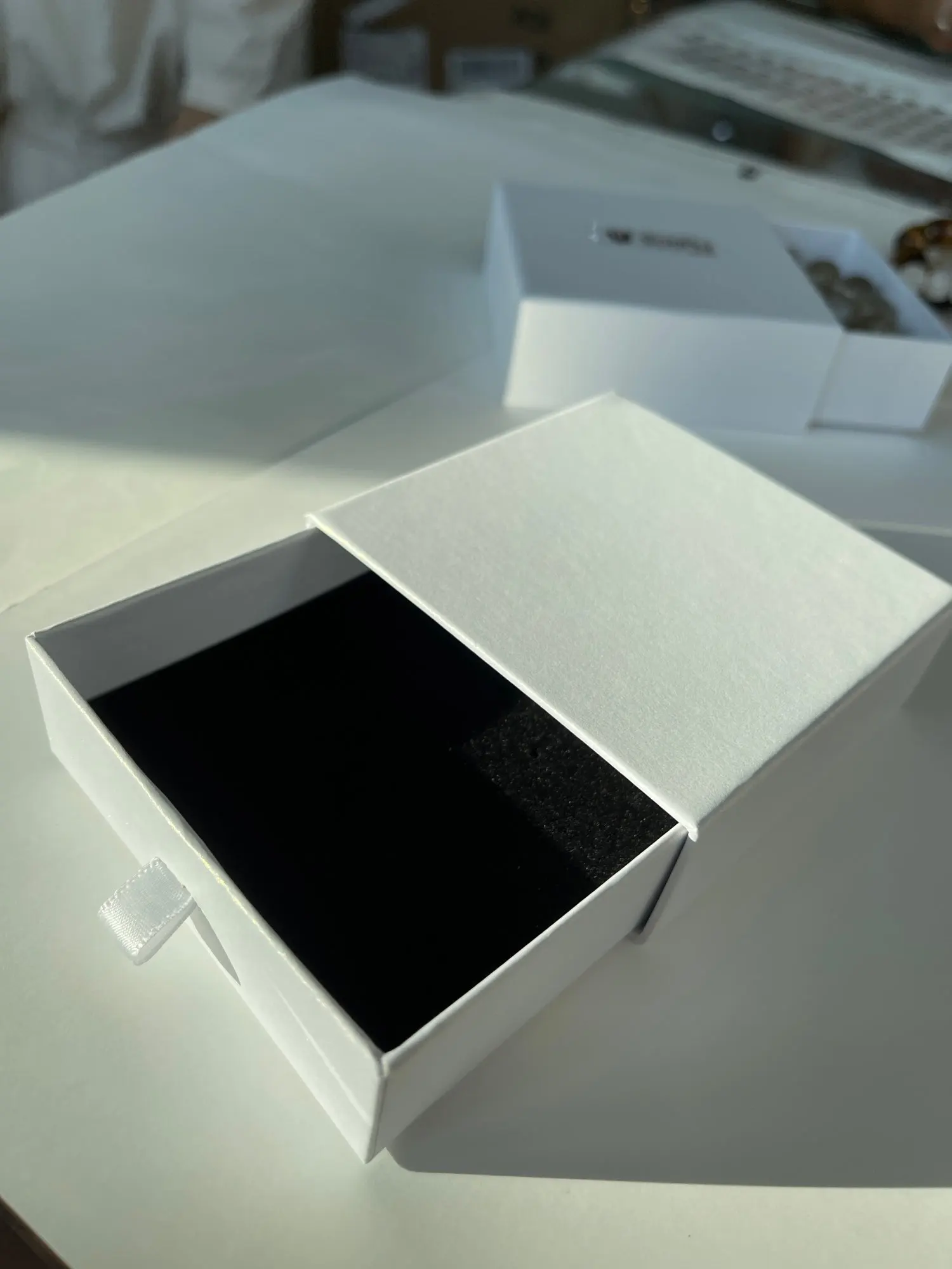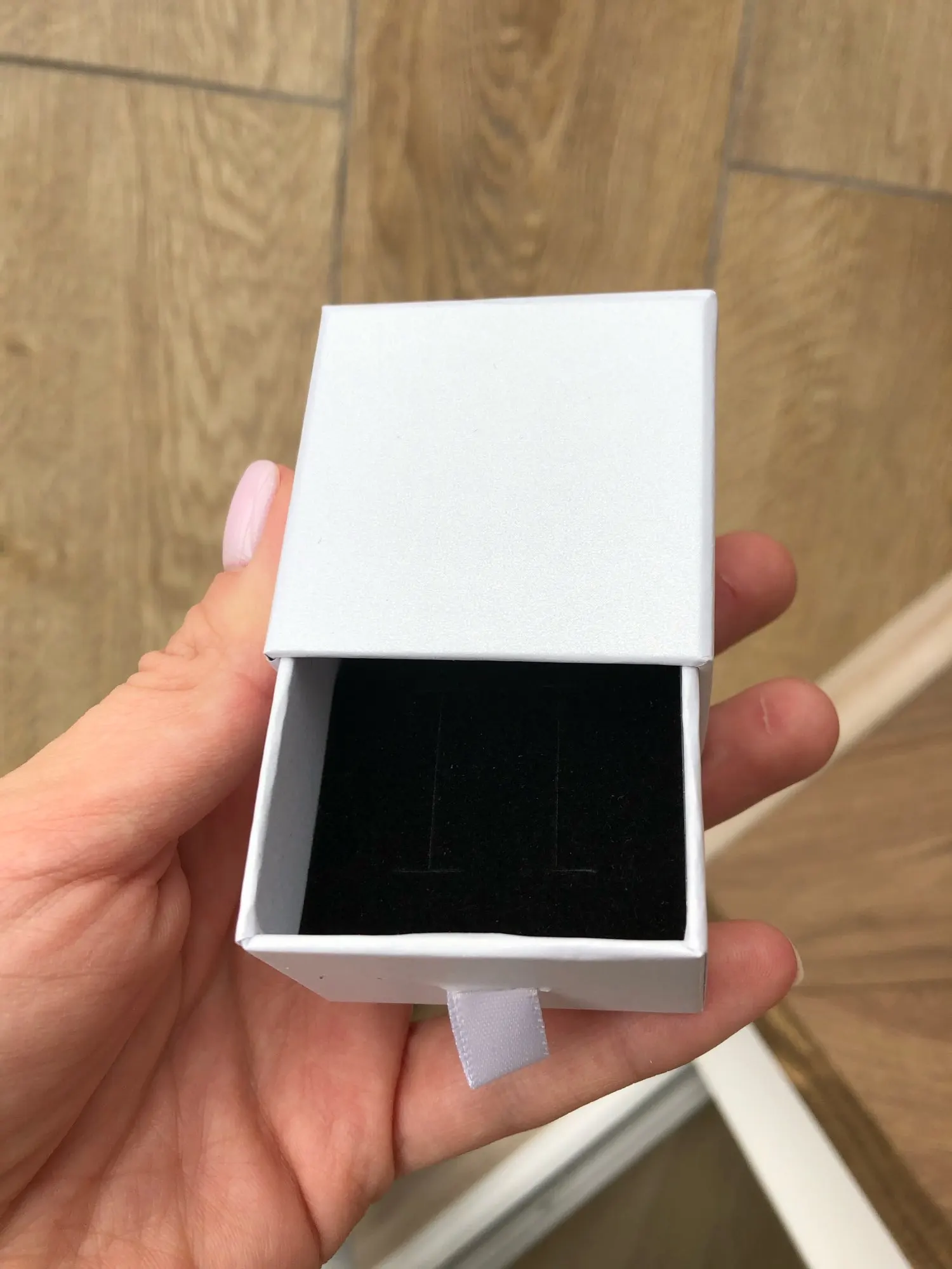 Красивая коробка! Хорошее качество, Бумага Толстая и цвет aper не только белый, но и мерцающий золотой. Очень хорошо Я обязательно закажу больше для своих ювелирных изделий