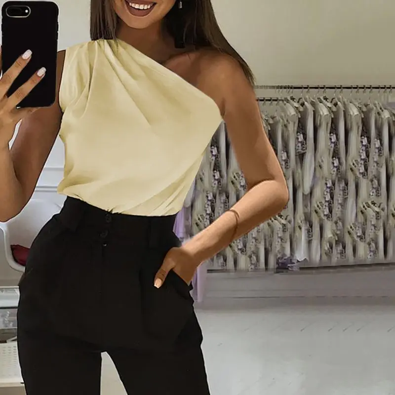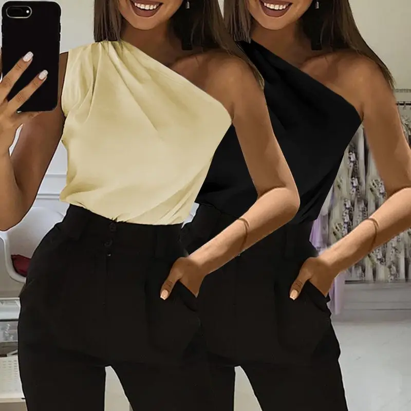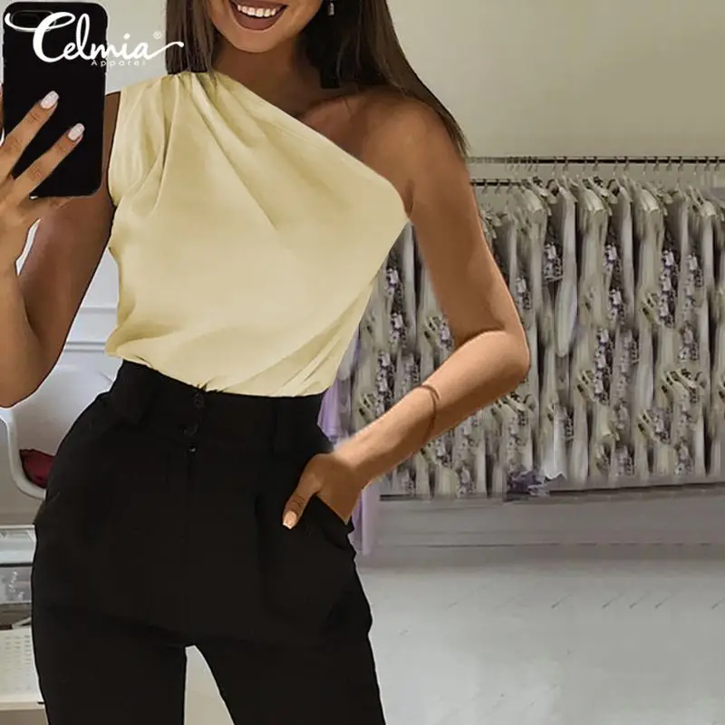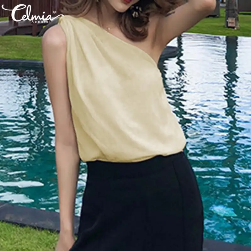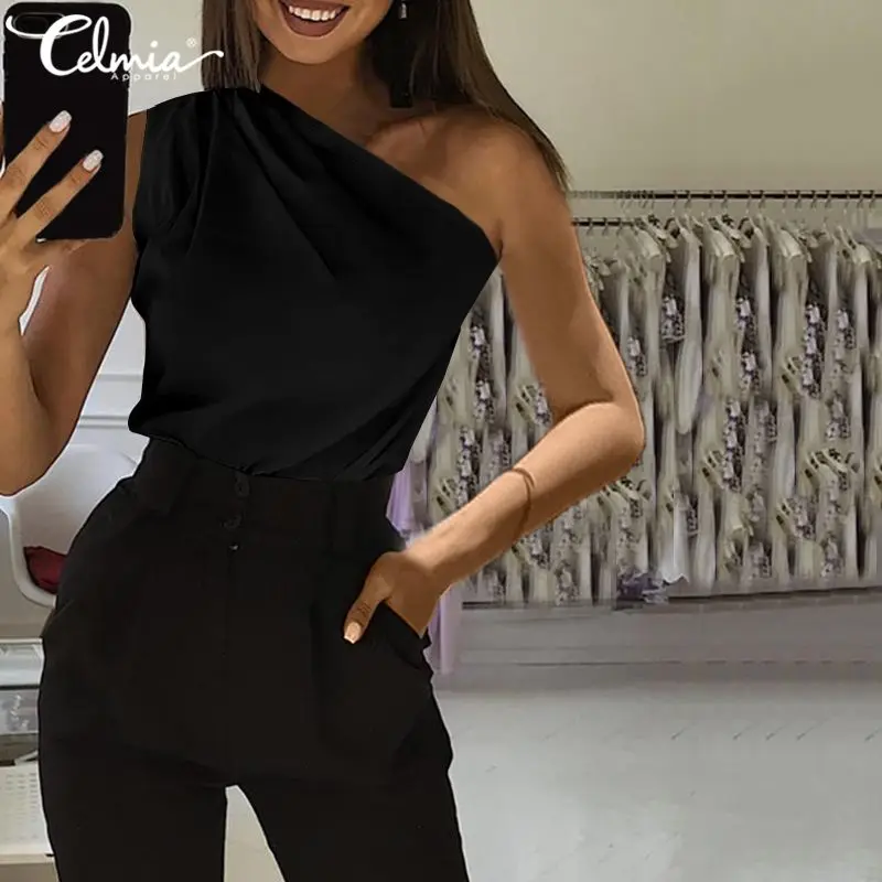 Celmia Женская мода рубашки размера плюс сексуальное с бретелькой на одно плечо без рукавов летние топы блузки 2021 повседневные однотонные офисные элегантные блузки 5XL