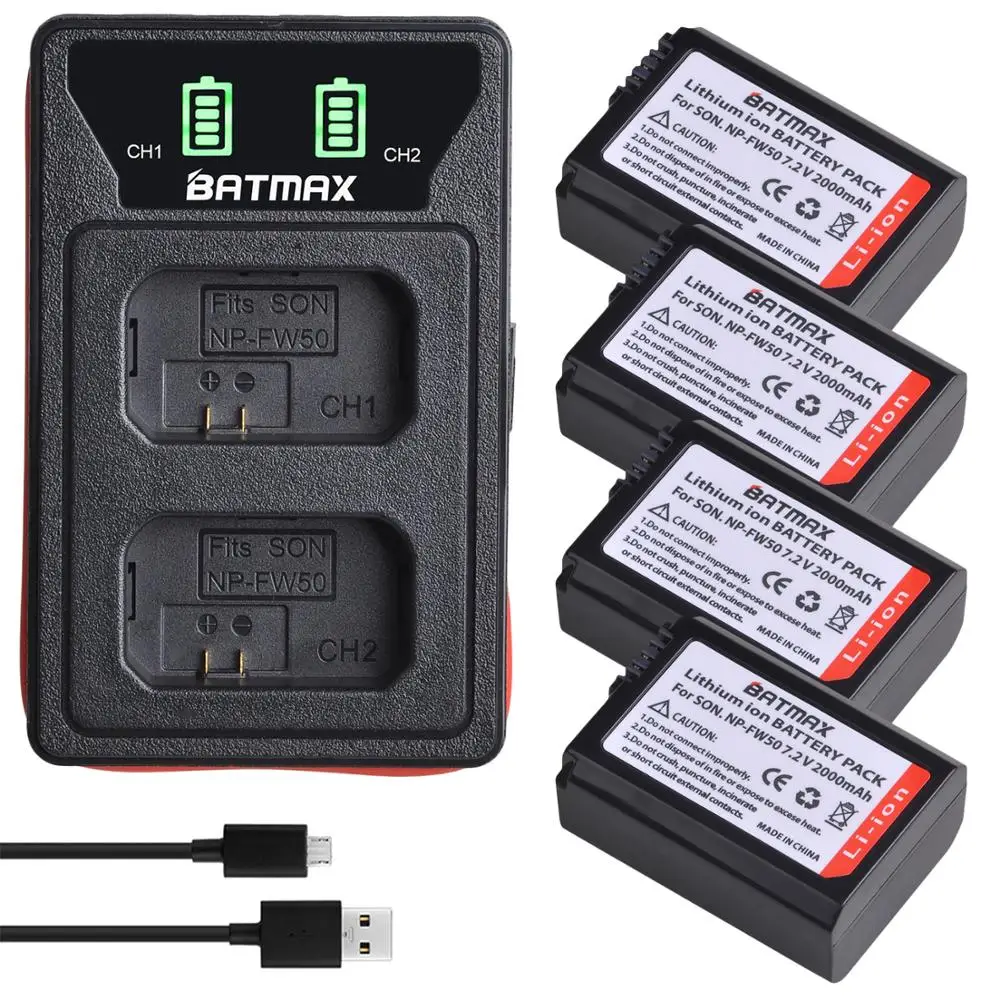 Аккумулятор 2000 мАч NP-FW50 NP FW50 + двойное зарядное устройство USB со светодиодной подсветкой для Sony A6000 A6400 A6300 A6500 A7 A7II A7RII A7SII A7S A7S2 A7R