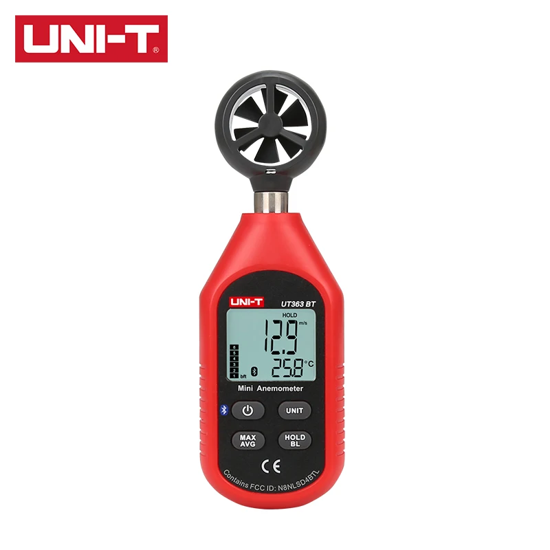 UT363/UT363BT-это мини-измерители скорости ветра и температуры. UT363 и ut363btмогут измерять скорость ветра до 30 м/с.UT363BT может передавать данные измерений через bluetooth в мобильное приложение UNI-T для дальнейшего анализа, хранения и экспорта. Ienvможно загрузить с Google Play, Apple Store или с веб-сайта UNI-T, выполнив поиск по ссылке ienv'.Особенности1. Внешний вид продукта красивый и изысканный, легко носить с собой