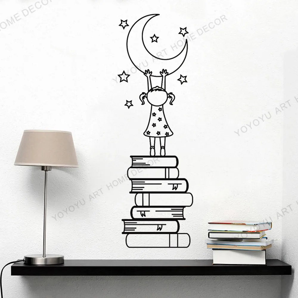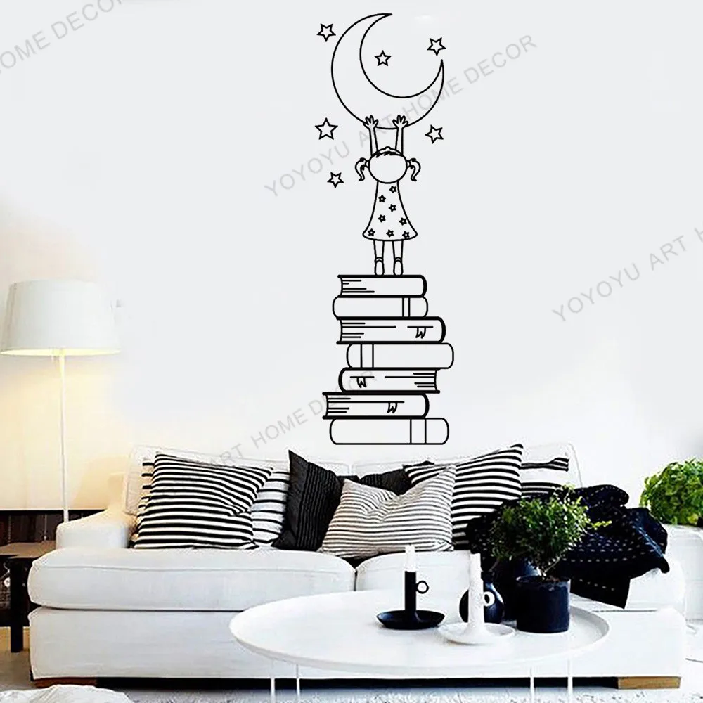 Самоклеящаяся для книг с Луной и звездами виниловая наклейка на стену Наклейка для детей Детская любовь чтения Наклейка на стену Спальня домашний декор rb706