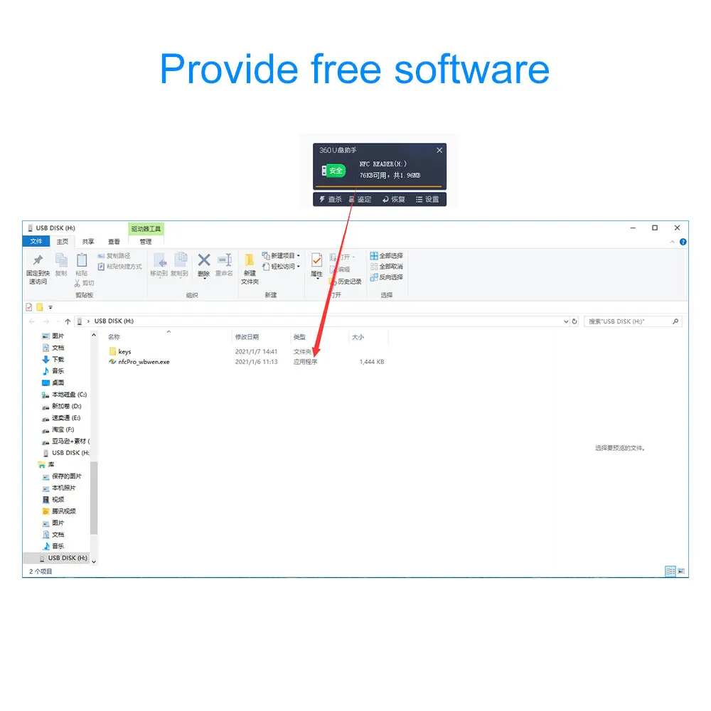 Подключите RFID-считыватель к компьютеру с помощью USB-кабеля, затем вы сможете найти программное обеспечение на компьютере.