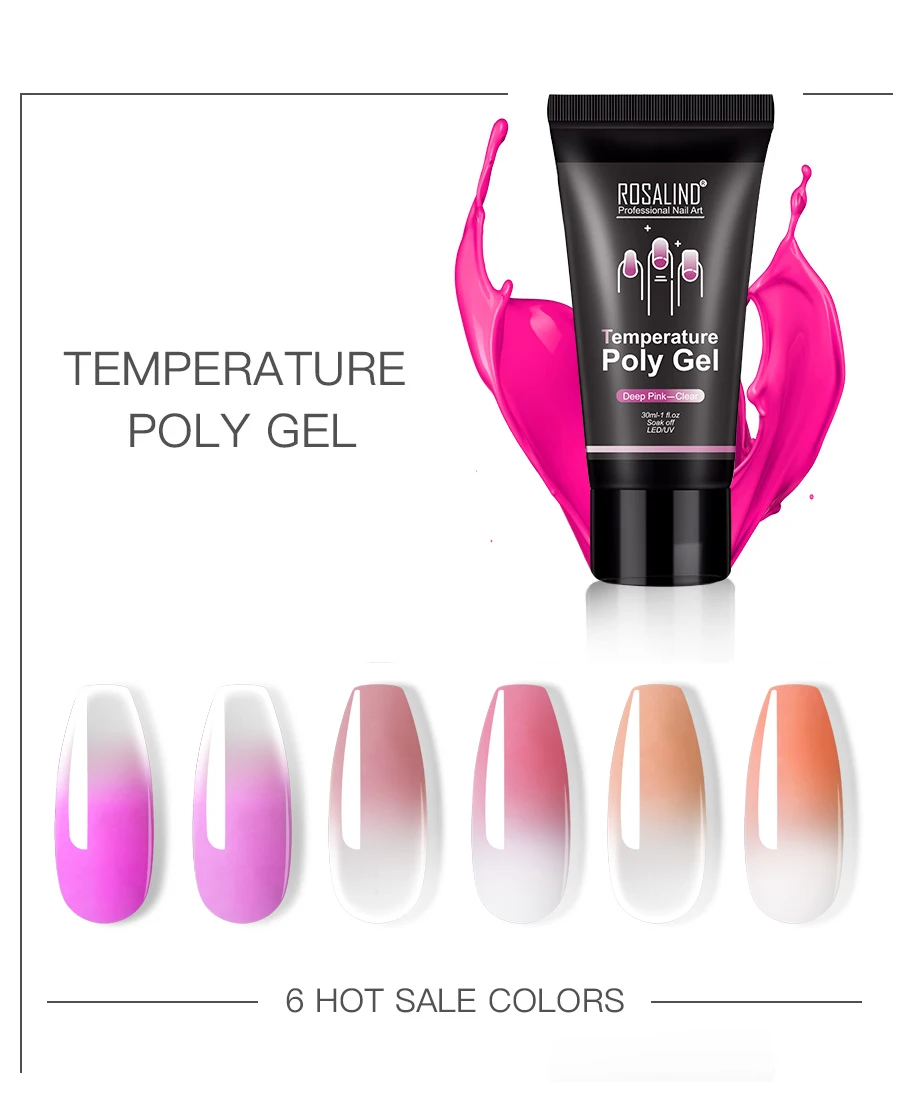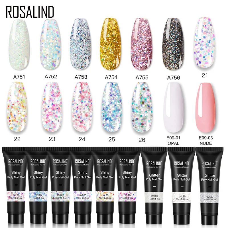 ROSALIND 15 мл/30 мл Блестящий полигель для ногтей горячая Распродажа модные цвета быстрое наращивание Блестящий политемпературный гель для наращивания ногтей