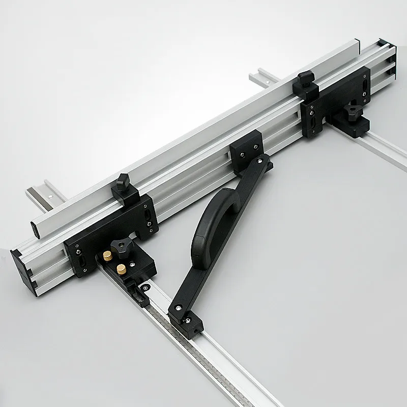 Система ограждения для настольной пилы Система поставляется с: 1 шт. Забор длинной 800 мм (1000 мм), высотой 80 мм и шириной 45 мм. 1 шт 940 мм Т-образная дорога, со шкалой измерения 12,8 мм Высота и 45 мм ширина. 1 шт 940 мм обычная Т-образная дорога, 12,8 мм Высота и 30 мм ширина. 1 шт Т-трек 690 мм Обычный Т-трек, который идет на забор для установки перьевых досок. 1 шт. Т-образная штанга и аксессуары для крепления на забор и микрорегулировочные аксессуары и шурупы. Эффективный ход забора составляет 750 мм.
