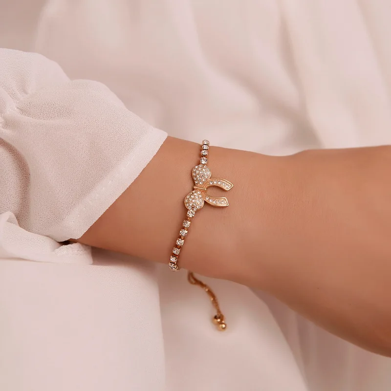 Модный стильный браслет на запястье, блестящие браслеты с цирконом, розовое золото, сердце, Круглый бант, браслеты для женщин, подарки