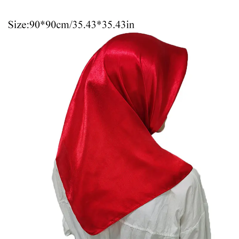 Хиджаб 90 см * 90 см, шарф для женщин, шелковые искусственные шарфы...