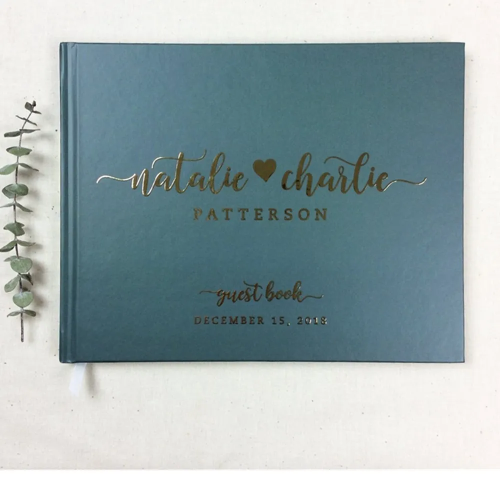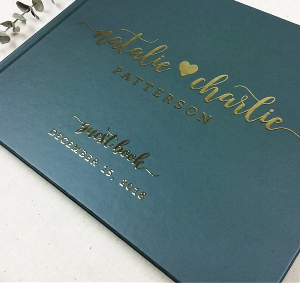 Индивидуальная горизонтальная настоящая фольга Свадебная Гостевая книга в твердом переплете с сердцем, Золотая фольга пользовательская книга для помолвки