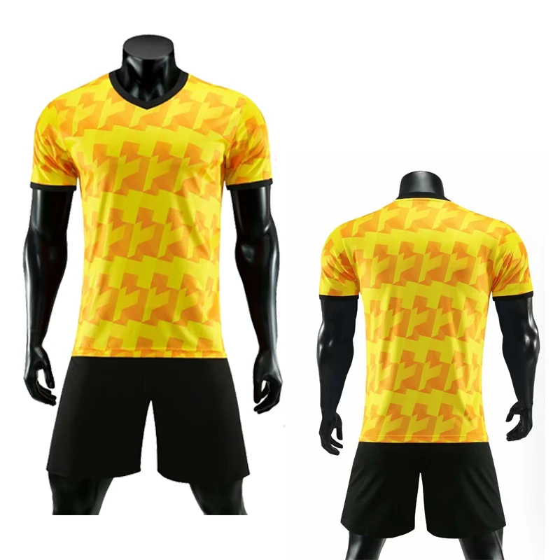 Комплект футбольной формы мужской, с коротким рукавом, желтого цвет...