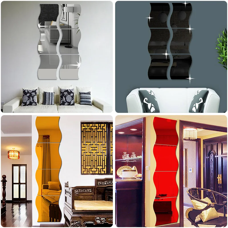 Зеркальные настенные 3d-наклейки, 6 шт., квадратные волнистые наклейки для гостиной, зеркальные настенные росписи, современное искусство, украшение для дома