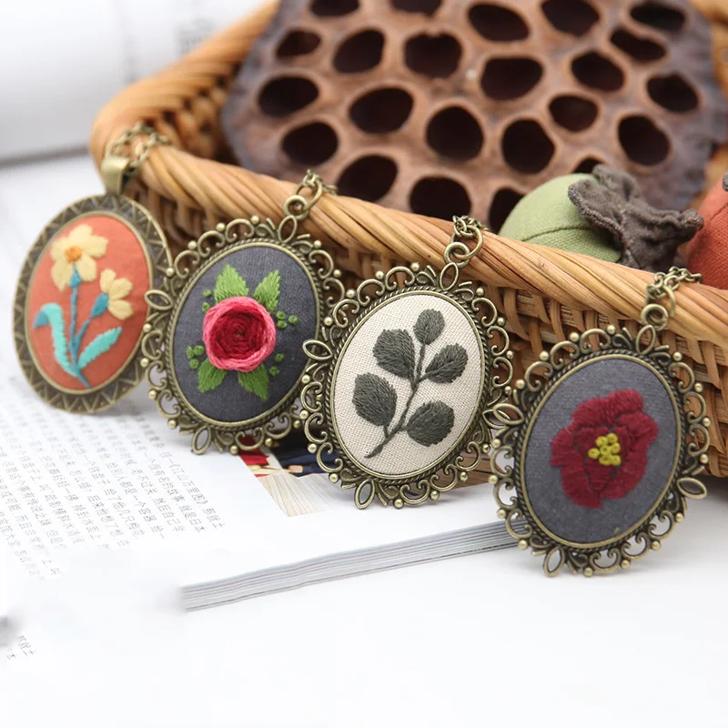 Набор для вышивки сделай сам, ожерелье, цветок, Набор для вышивки крестиком, вышивка с кольцом, качели, рукоделие, креативный подарок