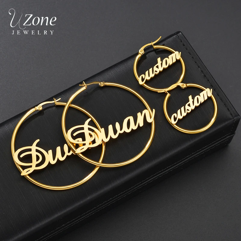 Женские серьги-кольца с буквами UZone, 1 пара сережек из нержавеющей стали с именем на заказ, вечерние ювелирные изделия для девочек на день рождения