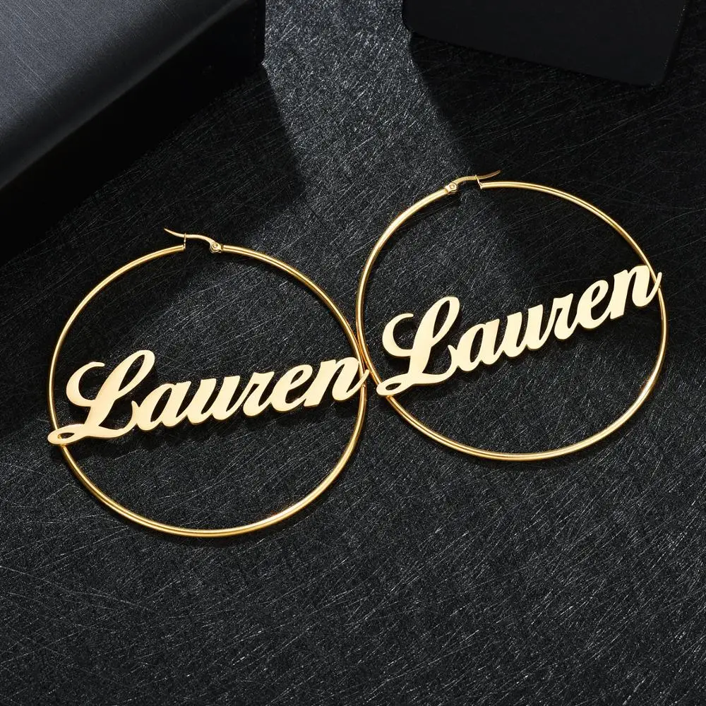 Feature/ShapeStainless Steel Custom Name Hoop Earrings