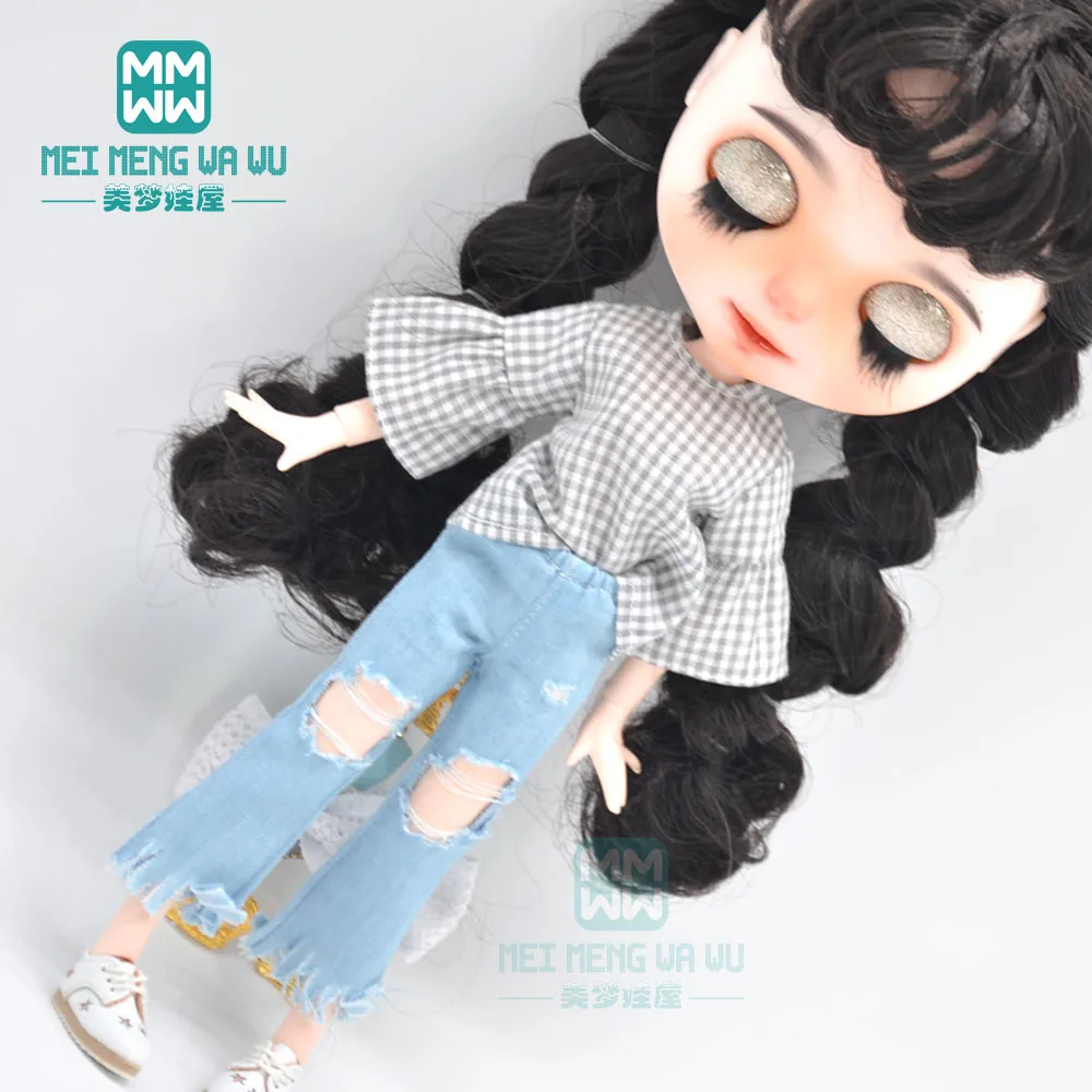 Одежда для куклы Blyth, 1 шт., модная клетчатая рубашка, комбинезон...