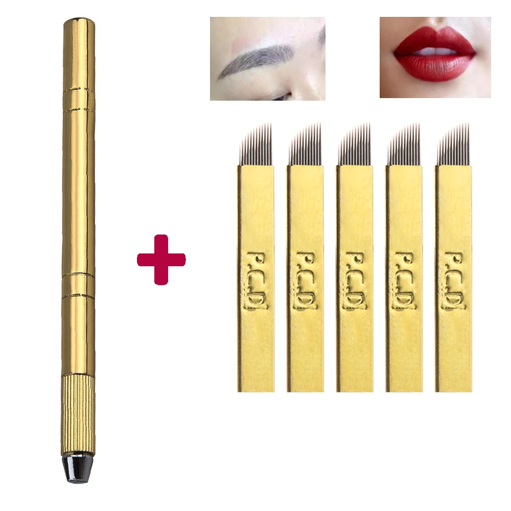 Бесплатная доставка Набор для перманентного макияжа бровей Microblade для боди-арта татуировки краски ручка + 5 шт. игл Инструкция для татуировки