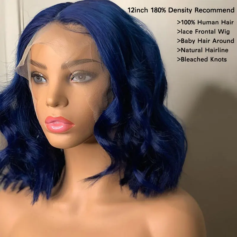 Темно-синий парик, человеческие волосы на шнуровке спереди, парик для женщин, предварительно выщипанные волосы, бразильские волосы, Реми, короткие, Боб, T-часть, парик на шнуровке 180%